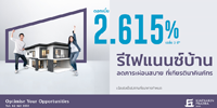 - ธนาคารเกียรตินาคินภัทร >> สินเชื่อรีไฟแนนซ์บ้าน >> ลดภาระผ่อนสบาย ที่เกียรตินาคิน เฉลี่ย 3 ปี ดอกเบี้ย 2.615% ต่อปี >> ไม่กำหนดระยะเวลา