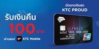 - เคทีซี >> สินเชื่อ KTC PROUD >> KTC PROUD บัตรใหม่ แค่รูดครั้งแรก รับเลย 100 บาท >> ตั้งแต่วันนี้ - 31 ต.ค. 64
