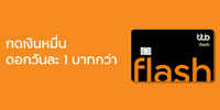- ธนาคารทหารไทยธนชาต >> สินเชื่อบัตรกดเงินสด flash >> กดเงินดอกเบี้ยถูก 4.99% ต่อปี นานสุด 4 เดือน >> ตั้งแต่วันที่ 1 ก.ค. - 30 ก.ย. 64