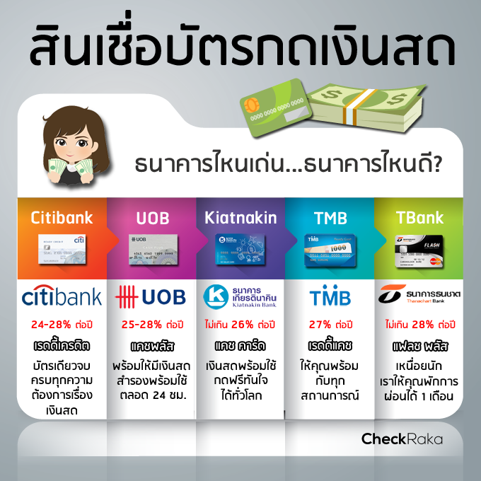 เห็นแบบนี้แล้ว หลายคนคงอยากจะรู้รายละเอียดของผลิตภัณฑ์สินเชื่อ บัตรกดเงินสด ของแต่ละธนาคารที่เราได้นำเสนอเป็นตัวอย่างในภาพแล้วใช่มั้ยคะ?