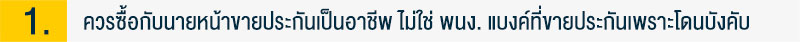 ทั้งประกันสุขภาพ และประกันชีวิตเป็นอะไรที่ค่อนข้างมีรายละเอียด และมีข้อยกเว้นเยอะ ดังนั้นถ้าเป็นไปได้เราควรซื้อกับคนรู้จัก หรือคนที่น่าจะมีความจริงใจกับเราที่จะบอกข้อเท็จจริงเกี่ยวกับประกันให้เราครบถ้วนที่สุด และมองผลประโยชน์ของเราเป็นที่ตั้งมากกว่ามองผลประโยชน์ในแง่ค่า Commission จากการที่ขายให้เรา เรื่องพวกนี้จะเห็นชัดเจนที่สุดเวลาเราต้องใช้สิทธิ Claim ประกันเวลาเราเข้าโรงพยาบาล ถ้านายหน้าที่รู้จักหรือจริงใจกับเราจะเข้ามาช่วยประสานให้เราใช้สิทธิได้ แต่ถ้าเราซื้อกับพนักงานธนาคารที่เราเคยเจอตามธนาคาร ถ้าเค้าย้ายสาขา หรือได้ยอดที่เค้าต้องทำแล้ว โทรไปอีกทีเค้าอาจไม่รับโทรศัพท์เราอีกเลย