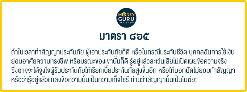 ประกันสุขภาพและประกันชีวิต ตั้งอยู่บนพื้นฐานหลักกฎหมายอย่างหนึ่งที่เรียกว่า "Utmost Good Faith" (มาตรา 865 ของประมวลกฎหมายแพ่งและพาณิชย์ไทย) สาระคือ บริษัทประกันจะพิจารณาสุขภาพของผู้เอาประกันเป็นหลัก ถ้าผู้เอาประกันภัยมีสุขภาพไม่ดี บริษัทประกันอาจปฏิเสธไม่ยอมรับทำประกันภัยได้ ดังนั้น จึงเป็นหน้าที่ของเราที่จะต้องสุจริต เปิดเผย และแจ้งความจริงต่อบริษัทประกันว่า เรามีสุขภาพเป็นอย่างไร เป็นโรคอะไรหรือไม่ ถ้าเราปกปิดข้อเท็จจริงเกี่ยวกับสุขภาพถึงขนาดที่หากบริษัทประกันได้รู้แล้ว อาจจะบอกปัดไม่รับทำประกันเลย สัญญาประกันนั้นจะเป็นโมฆียะ ตัวอย่างของโรคที่เรารู้ แต่ไม่แจ้งบริษัทประกันที่ศาลไทยเราเคยตัดสินไว้ว่า สัญญาประกันชีวิต หรือสุขภาพเป็นโมฆียะ และบริษัทประกันจะมีสิทธิยกเลิกสัญญาได้เลย เช่น