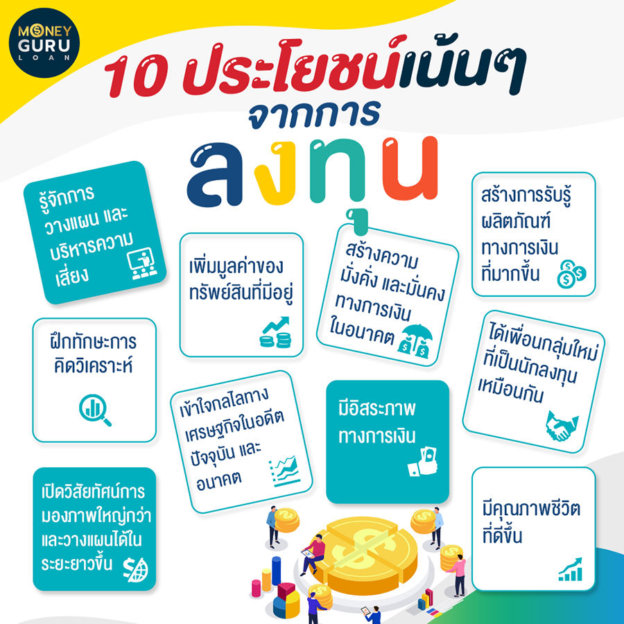 ทำไม...ต้องลงทุน? การลงทุน (Investment) คือ การออมในแบบที่ทำเพื่อให้ได้รับผลตอบแทนกลับมามากขึ้นในอนาคต แต่ทุกการลงทุนนั้นนักลงทุนจะต้องทำความเข้าใจด้วยว่า "การลงทุนมีความเสี่ยง" ซึ่งอาจจะมีผลทำให้ผู้ลงทุนได้รับเป็นกำไรหรือขาดทุนก็ได้ ทั้งนี้ขึ้นอยู่กับการตั้งเป้าหมาย การตัดสินใจ การวางแผน และการศึกษาหาข้อมูลที่เกี่ยวข้องกับการลงทุนนั้นๆ ให้ดี เพื่อเป็นการลดความเสี่ยงการขาดทุนจากการลงทุน และได้รับผลตอบแทนตามที่เราตั้งเป้าหมายไว้