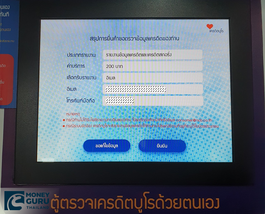 - ตู้ตรวจเครดิตบูโรด้วยตนเองรอรับรายงานรูปแบบอีเมลได้ทันที
