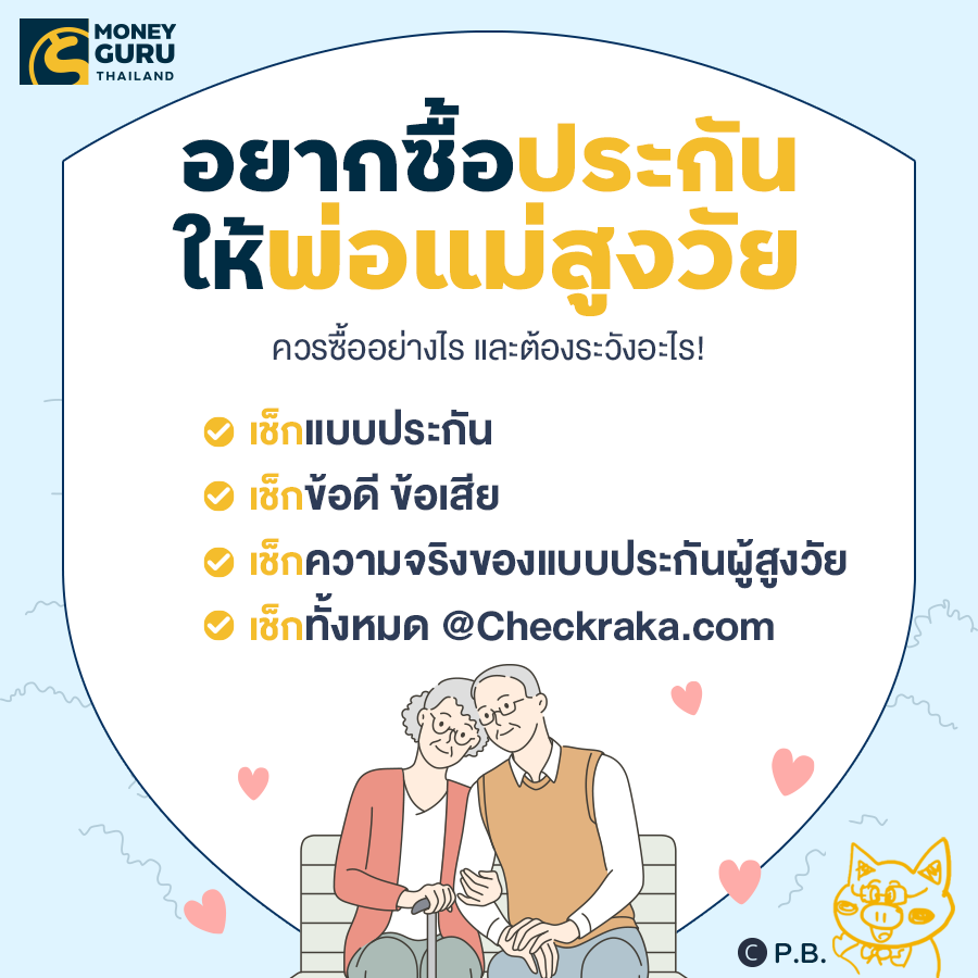 7 ข้อควรรู้ และควรระวังก่อนซื้อประกันสูงสัยให้พ่อแม่ หลายท่านคงมีคำถามว่าแล้วมีตั้ง 5 แบบ ควรซื้อประกันอะไร P.B.ขอให้คำแนะนำ และข้อคิด 7 ประเด็นก่อนที่จะทำประกันสูงวัยให้คุณพ่อคุณแม่ดังนี้ค่ะ
