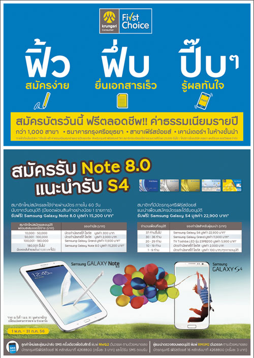 สมัครบัตรกรุงศรีเฟิร์สช้อยส์ รับ ฟรี Note 8.0 แนะนำรับ S4
