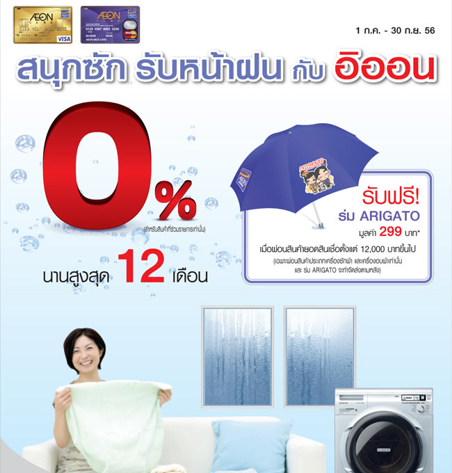 สนุกซักรับหน้าฝน กับ อิออน ผ่อนสินค้า 0% นาน 12 เดือน ระหว่างวันที่ 1 ก.ค - 30 ก.ย.56