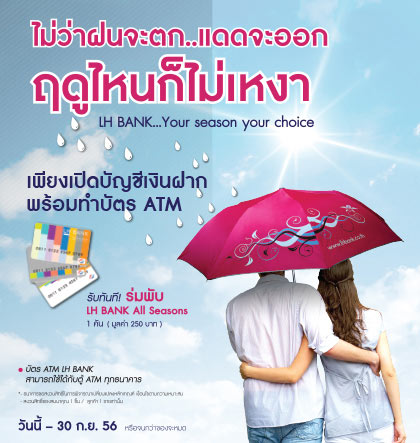 ธนาคารแลนด์ แอนด์ เฮ้าส์ มอบโปรโมชั่น สำหรับผู้ที่เปิดบัญชีเงินฝากพร้อมทำบัตร ATM รับทันที! ร่มพับ LH Bank All Seasons 1 คัน (มูลค่า 250 บาท)