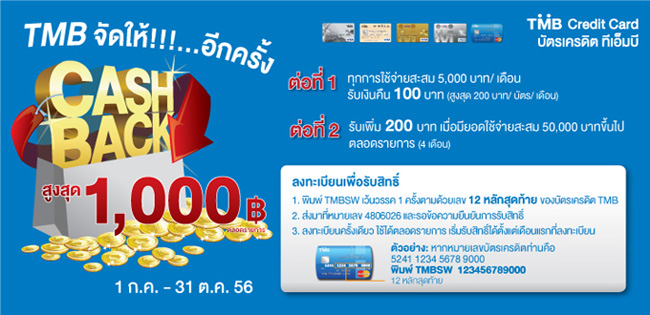 TMB จัดให้!!!...อีกครั้ง CASH BACK สูงสุด 1,000 บาท