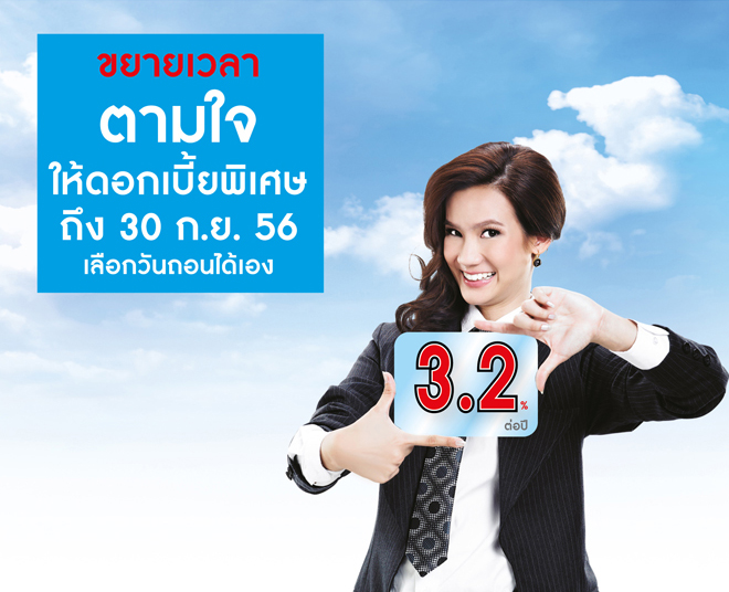 KTB เงินฝากประจำตามใจ ขยายเวลาตามใจให้ดอกเบี้ยพิเศษถึง 30 ก.ย. 56