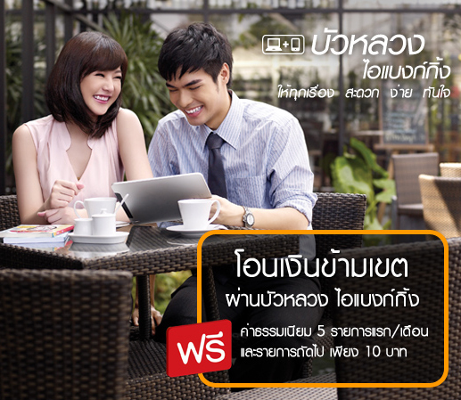 ฟรี! ค่าธรรมเนียม 5 รายการ/เดือน เมื่อโอนเงินข้ามเขต ผ่านบริการบัวหลวง ไอแบงก์กิ้ง
