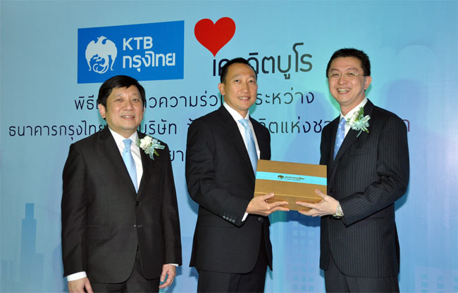 นายวรภัค ธันยาวงษ์ กรรมการผู้จัดการใหญ่ ธนาคารกรุงไทย และ นายสุรพล โอภาสเสถียร ผู้จัดการใหญ่บริษัท ข้อมูลเครดิตแห่งชาติ จำกัด (เครดิตบูโร) ร่วมแถลงข่าว ความร่วมมือการให้บริการรับคำขอตรวจเครดิตบูโรผ่าน Internet Banking ที่ธนาคารกรุงไทย อาคารสำนักงานใหญ่ เมื่อวันที่ 10 กันยายน 2556 โดยธนาคารกรุงไทยเป็นธนาคารแห่งแรกที่ให้บริการรับคำขอตรวจข้อมูลเครดิตบูโรครบทุกช่องทาง ได้แก่ เคาน์เตอร์สาขากว่า 1,100 แห่งทั่วประเทศ เครื่อง ATM กว่า 10,000 เครื่อง รวมทั้ง Internet Banking เพื่ออำนวยความสะดวกให้กับลูกค้าและประชาชนทั่วไป