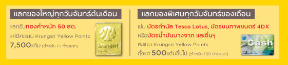 Krungsri Yellow Point เพิ่มค่าทุกวันจันทร์ แลกรับทอง และของพิเศษมากมาย