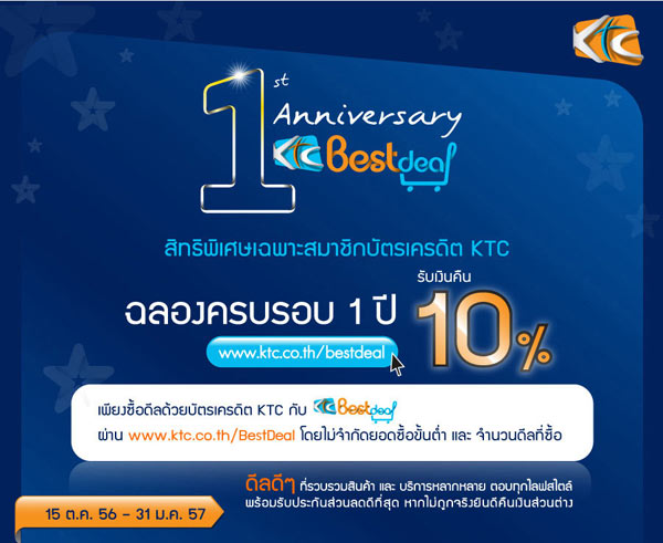 22 ต.ค. 56 2,015ฉลองครบรอบ 1 ปี Ktc Best deal ซื้อดีลด้วยบัตรเครดิต KTC รับเงินคืน 10%