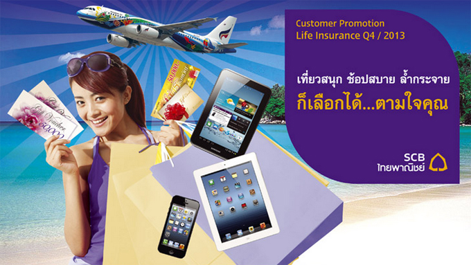 เที่ยวสนุก ช้อปสบาย ล้ำกระจาย ก็เลือกได้...ตามใจคุณ เพียงชำระค่าเบี้ยประกันชีวิตแบบรายปี ผ่านบัตรเครดิตไทยพาณิชย์