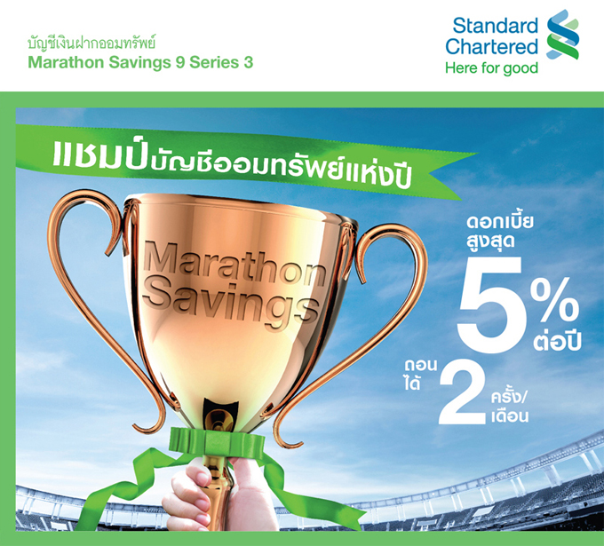 ธ.สแตนดาร์ดชาร์เตอร์ด เปิดแคมเปญบัญชีเงินฝากออมทรัพย์ Marathon Savings 9 Series 3