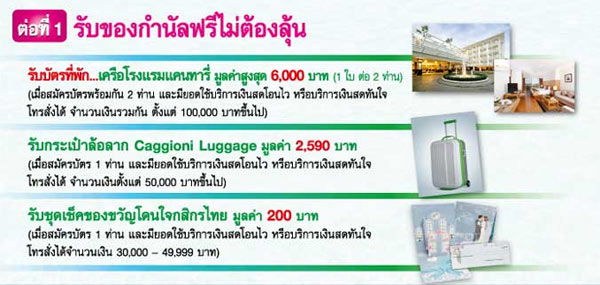 - ธนาคารฯ จะจัดส่งของกำนัลเมื่อลูกค้าปฏิบัติตามเงื่อนไขที่กำหนด โดยธนาคารจะจัดส่งของกำนัลให้ภายใน 60 วันหลังจากสิ้นสุดโครงการ