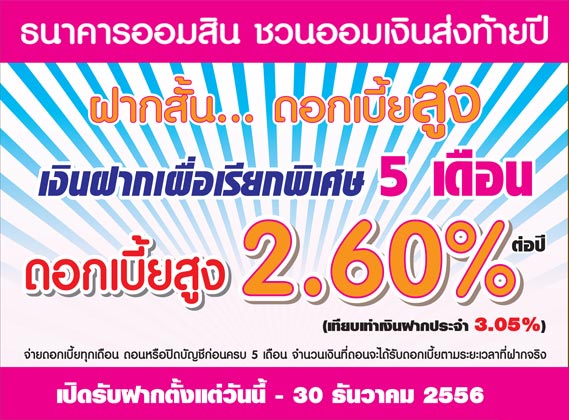 ระยะเวลาที่เปิดรับฝาก: 15 พ.ย.- 31 ม.ค.57