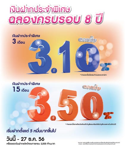 - บัญชีเงินฝากประจำพิเศษ 3 เดือน อัตราดอกเบี้ย 3.10% ต่อปี