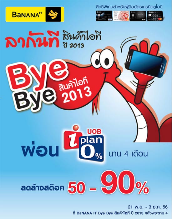 BaNANA IT Bye Bye สินค้าไอที 2013 ลดล้างสต๊อค 50-90% ที่คลังพระราม 4 และผ่อนกับบัตรเครดิตยูโอบี 0% นาน 4 เดือน