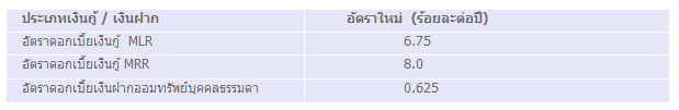 อัตราดอกเบี้ยเงินกู้ และเงินฝาก (มีผลตั้งแต่วันที่ 29 พฤศจิกายน 2556)