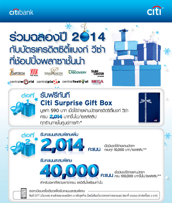 ร่วมฉลองปี 2014 กับบัตรเครดิตซิตี้แบงก์ วีซ่า ที่ช้อปปิ้งพลาซ่าชั้นนำ รับสิทธิพิเศษ 2 ต่อ