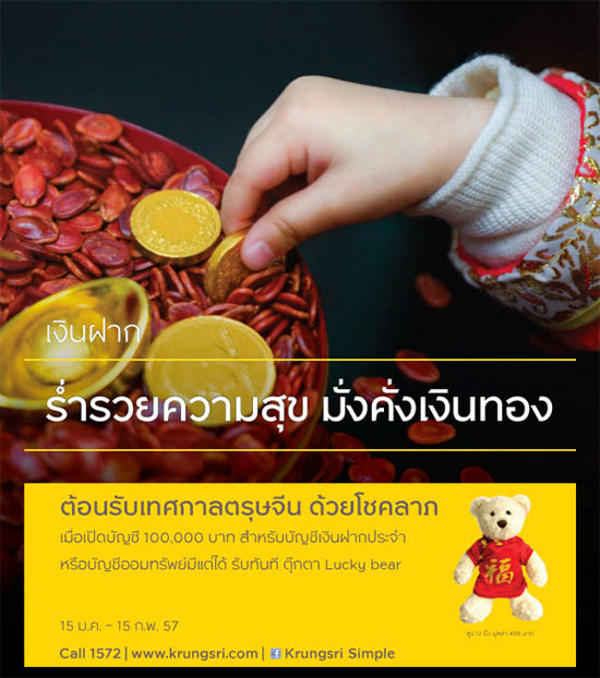 ต้อนรับเทศกาลตรุษจีนด้วยโชคลาภ กับเงินฝากร่ำรวยความสุข มั่งคั่งเงินทอง จาก ธ.กรุงศรีฯ