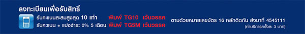 - ธนาคารจะมอบสิทธิ์ให้แก่ผู้ถือบัตรนับจากวันที่ลงทะเบียน SMS ตามที่สื่อระบุและได้รับข้อความยืนยันรับสิทธิ์จากธนาคาร โดยจะต้องเก็บรักษาข้อความ SMS การลงทะเบียนนี้ เพื่อนำมายืนยันในกรณีที่จำเป็น