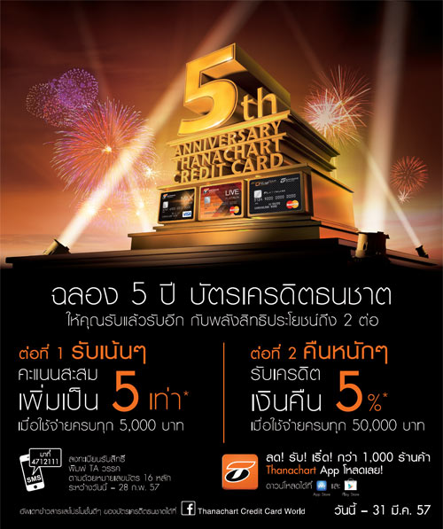 ฉลอง 5 ปี บัตรเครดิตธนชาตให้คุณรับแล้วรับอีก กับพลังสิทธิประโยชน์ถึง 2 ต่อ