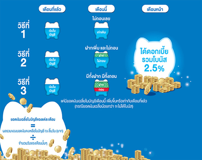 ออมยังไงในเดือนนี้ ให้ได้รับดอกเบี้ยรวมโบนัส 2.5% ในเดือนหน้า
