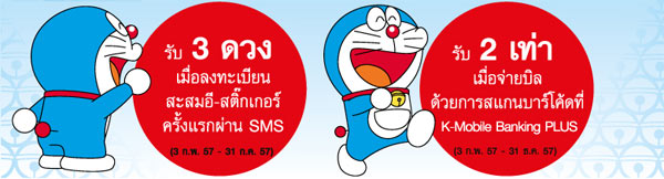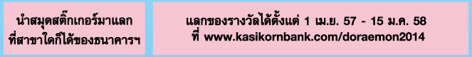 24 ก.พ. 57 8,493"จ่ายบิลด่วน" แลกของวิเศษโดราเอมอนชิ้นใหม่ สะสมง่ายกว่าเดิม ที่ธนาคารกสิกรไทย
