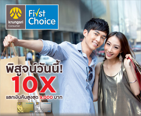พิสูจน์วันนี้ บัตรเครดิตกรุงศรี เฟิร์สช้อยส์ ให้คุณรับคะแนนสะสมสูงสุด 10 เท่า หรือ 90,000 คะแนน! แลกรับเครดิตเงินคืนสูงสุด 9,000 บาท หรือแลกรับของกำนัลมากมาย เพียงคลิก www.firstchoice.co.th พร้อมดาวน์โหลด "แบบฟอร์มรับของกำนัล"
