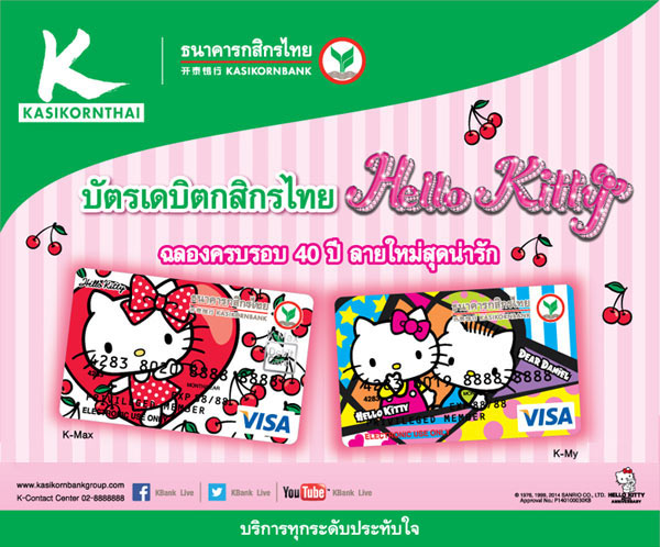 บัตรเดบิตกสิกรไทย Hello Kitty ฉลองครบรอบ 40 ปี ลายใหม่สุดน่ารัก พร้อมสิทธิพิเศษโดนๆ อีกครบเซ็ต*