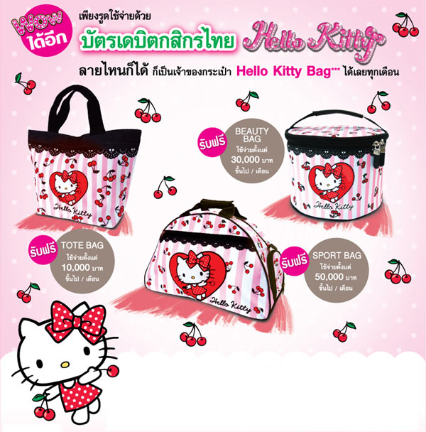 - จำกัดจำนวนการแลกรับ Hello Kitty Bag 1 ชิ้น/1 หมายเลขบัตรเดบิต/เดือน