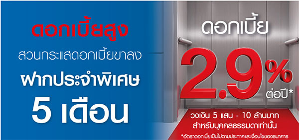 ธนาคารทิสโก้สวนกระแสดอกเบี้ยขาลงกับเงินฝากประจำพิเศษ 5 เดือน ดอกเบี้ย 2.9% ต่อปี