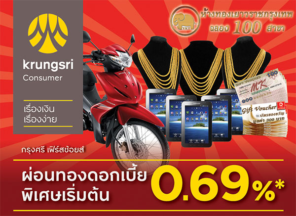 ห้างทองเยาวราชกรุงเทพฉลอง 100 สาขา ให้คุณผ่อนทองกับบัตรกรุงศรี เฟิร์สช้อยส์ ดอกเบี้ยพิเศษ! เริ่มต้น 0.69%*