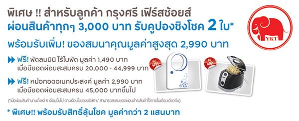 1. สิทธิพิเศษสำหรับลูกค้าที่ผ่อนชำระสินค้านานตั้งแต่ 6 เดือนขึ้นไป ตามเงื่อนไขของบริษัทฯ ภายในวัน และเวลาที่กำหนดเท่านั้น
