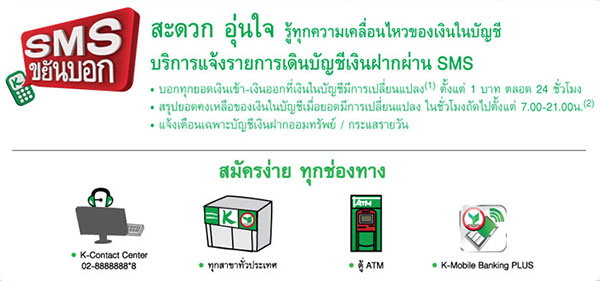สะดวก อุ่นใจ รู้ทุกความเคลื่อนไหวของเงินในบัญชีกับบริการแจ้งรายการเดินบัญชีเงินฝากผ่าน SMS (SMS ขยันบอก) จากธนาคารกสิกรไทย
