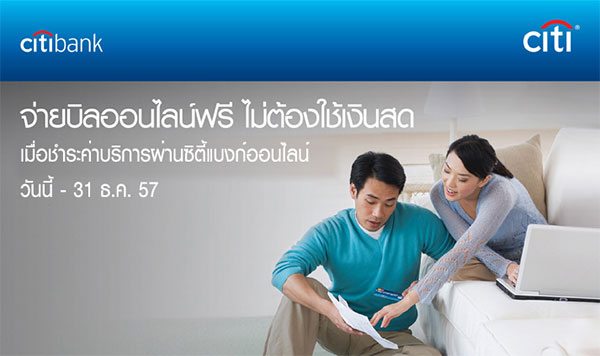 ซิตี้แบงก์ออนไลน์ให้คุณจ่ายบิลออนไลน์ฟรี ไม่ต้องใช้เงินสด วันนี้ - 31 ธ.ค.57