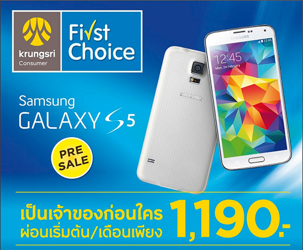 Samsung GALAXY S5 Pre-Sale สุดยอดดีล! คลิกช้อปออนไลน์ กรุงศรีเฟิร์สช้อยส์จัดให้! ผ่อน 0% นาน 20 เดือน เริ่มต้นที่ 1,190 บาท พร้อมรับข้อเสนอสุดพิเศษที่ dtac | online store