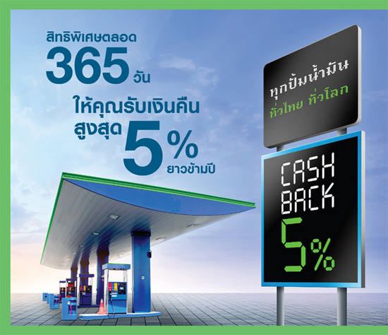 จะดีกว่าไหม หากเติมน้ำมันด้วยบัตรเครดิตฯ แล้วได้รับเงินคืนยาวข้ามปี ทุกปั๊มน้ำมันทั่วไทย ทั่วโลก