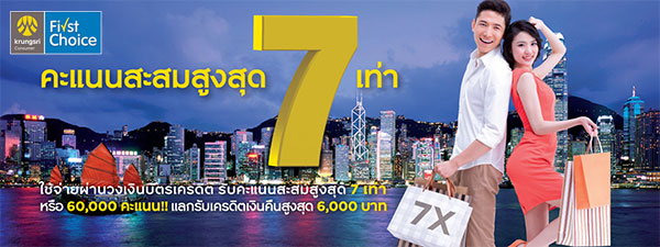 รับคะแนนสะสมสูงสุด 7 เท่า กับบัตรเครดิตกรุงศรี เฟิร์สช้อยส์ วีซ่า