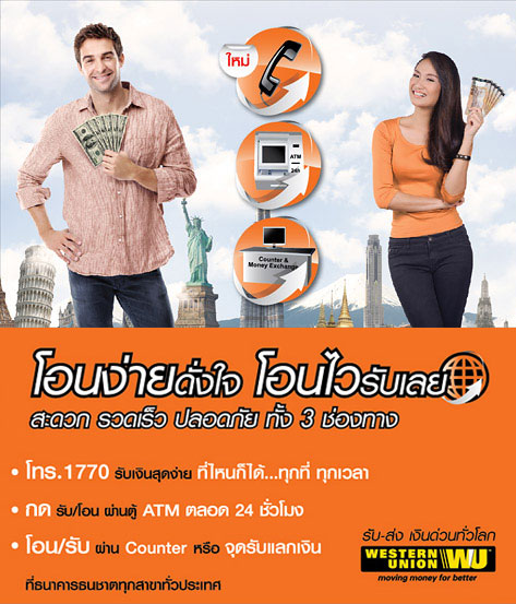 บริการโอนเงินเวสเทิร์น ยูเนี่ยน ผ่านระบบลูกค้าสัมพันธ์ ธนชาต Contact Center