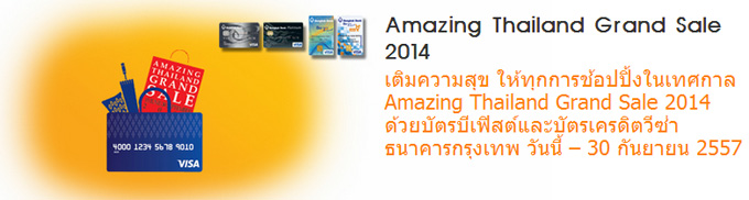 เติมความสุข ให้ทุกการช้อปปิ้งในเทศกาล Amazing Thailand Grand Sale 2014 ด้วยบัตรบีเฟิสต์ และบัตรเครดิตวีซ่า ธนาคารกรุงเทพ วันนี้ - 30 กันยายน 2557