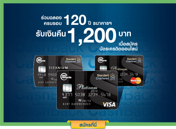 ฉลองครบรอบ 120 ปี สมัครบัตรเครดิต Standard Chartered ออนไลน์วันนี้ รับเงินคืน 1,200 บาท