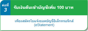 - ข้อกำหนดและเงื่อนไขของการสมัครใช้บริการใบแจ้งยอดบัญชีอิเล็กทรอนิกส์ ให้เป็นไปตามเงื่อนไขของธนาคารฯ