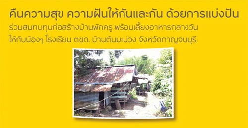 Simple to Share "ร่วมทำดีด้วยการแบ่งปัน" ร่วมสมทบมุนก่อสร้างบ้านพักครู พร้อมเลี้ยงอาหารกลางวันให้กับน้องๆ โรงเรียน ตชด. บ้านต้นมะม่วง จังหวัดกาญจนบุรี กับธนาคารกรุงศรีอยุธยา