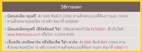 - คะแนนสะสมจากบัตรเครดิตในเครือกรุงศรี แลกคะแนนสะสม 1,000 คะแนน = 120 บาท