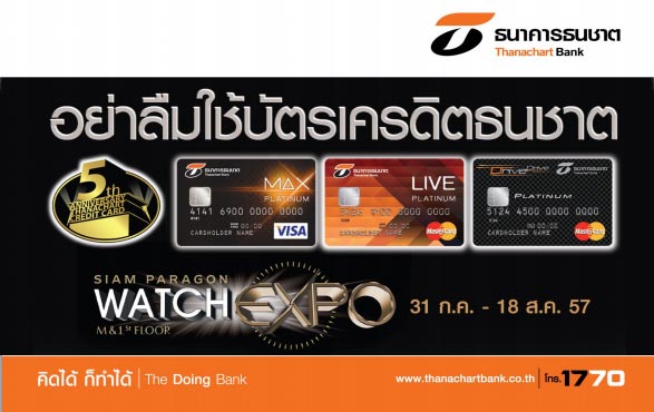 ใช้บัตรเครดิตธนชาตในงาน Siam Paragon Watch Expo 2014 ที่สยามพารากอน รับสิทธิพิเศษ 2 ต่อ