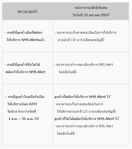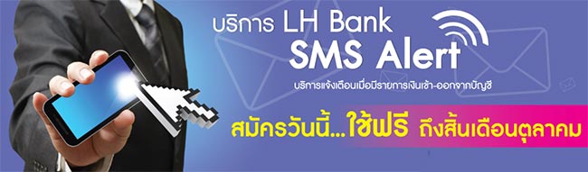 หมายเหตุ: หลังจากวันที่ 31 ตุลาคม 2557 หากลูกค้ามีความประสงค์ใช้บริการ LH Bank SMS Alert กับธนาคารต่อ สามารถสมัครใช้บริการได้ที่สาขา หรือตู้ ATM ของธนาคารทั่วประเทศ